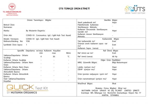 COVID-19 Coronavirus IgG/IgM Antikor Hızlı Tanı Test Kiti